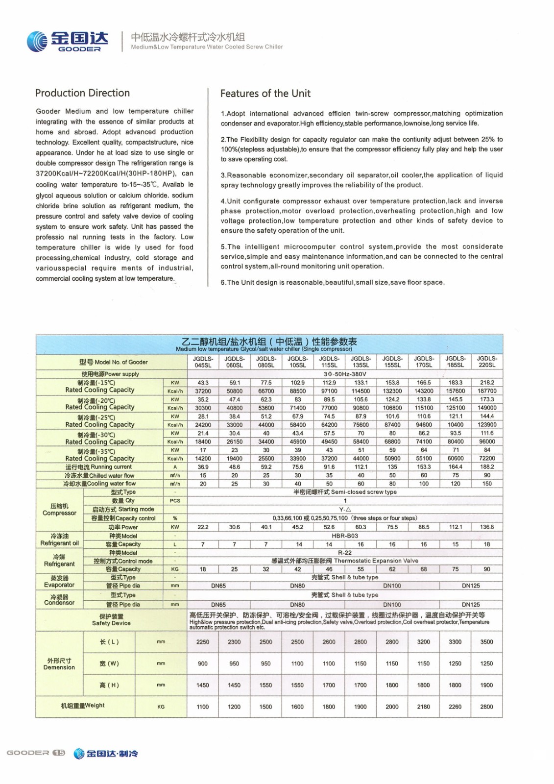 產(chǎn)品描述:水冷螺桿式冷水機(jī)組(中低溫) 中低溫冷水機(jī)組(單) 中低溫冷水機(jī)組(雙)產(chǎn)品簡(jiǎn)介:品 名:冷凍冷藏機(jī)組; 系 列:JGDZL;壓 機(jī):半封閉式、螺桿式(可選);功 能:冷藏、冷凍、熱水回收型(余熱利用);冷 媒:環(huán)保型、常規(guī)型(可選);熱 源:空氣能、冷卻塔(地下水、江河水、湖水、海水、生活污水及工業(yè)廢水等)冷 卻:風(fēng)冷卻、水冷卻認(rèn) 證:通過(guò)國(guó)家節(jié)能產(chǎn)品認(rèn)證;